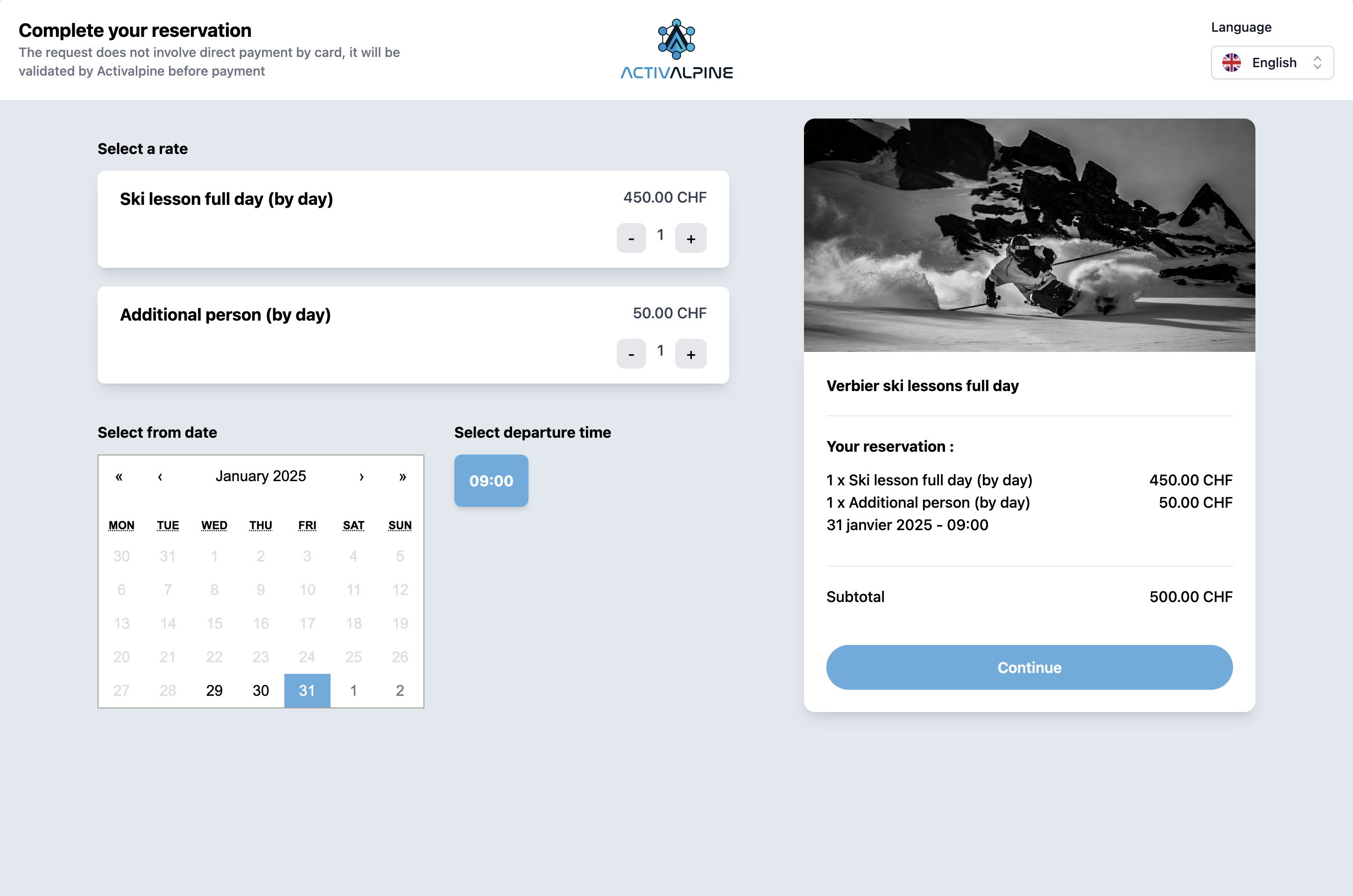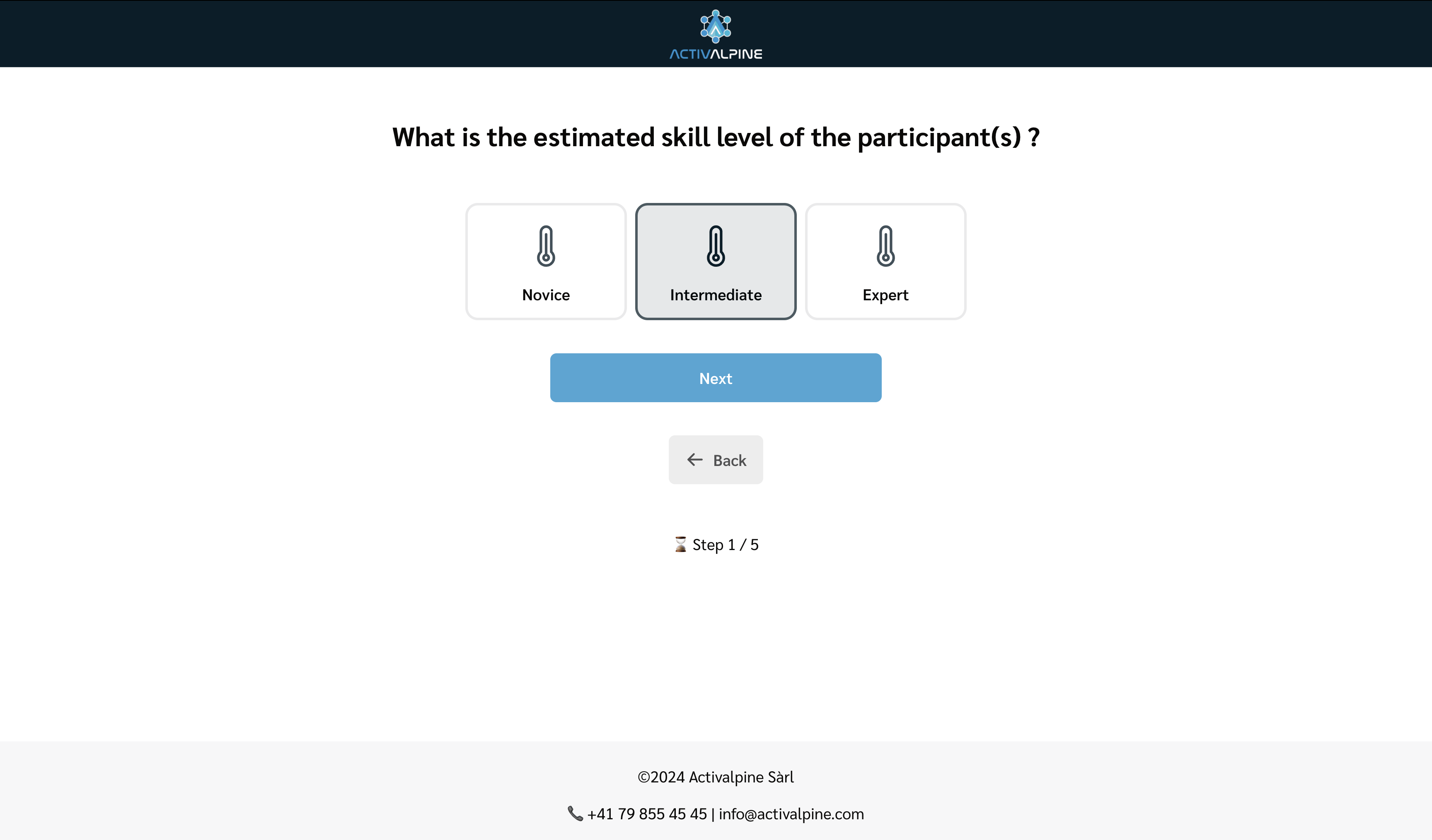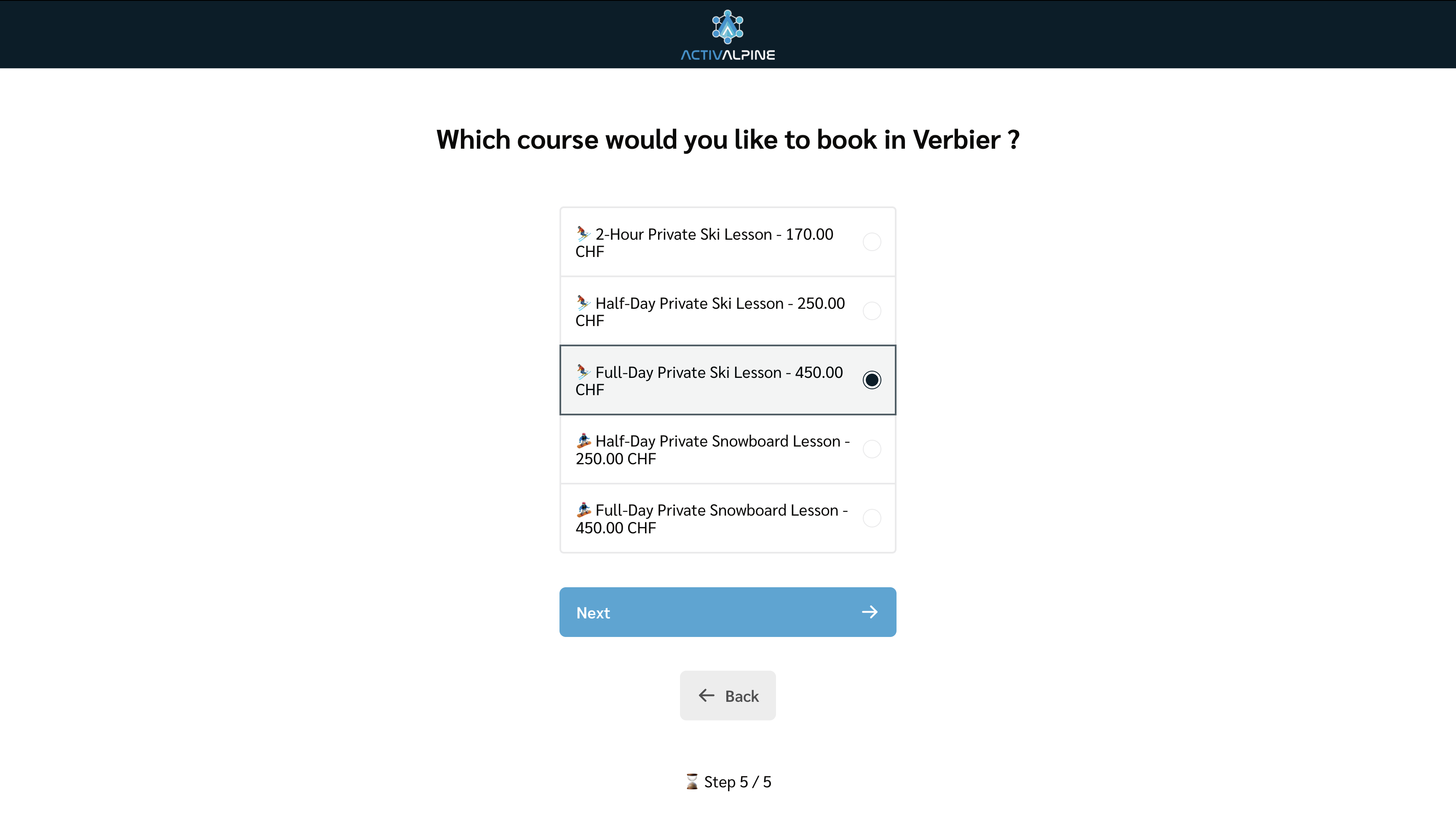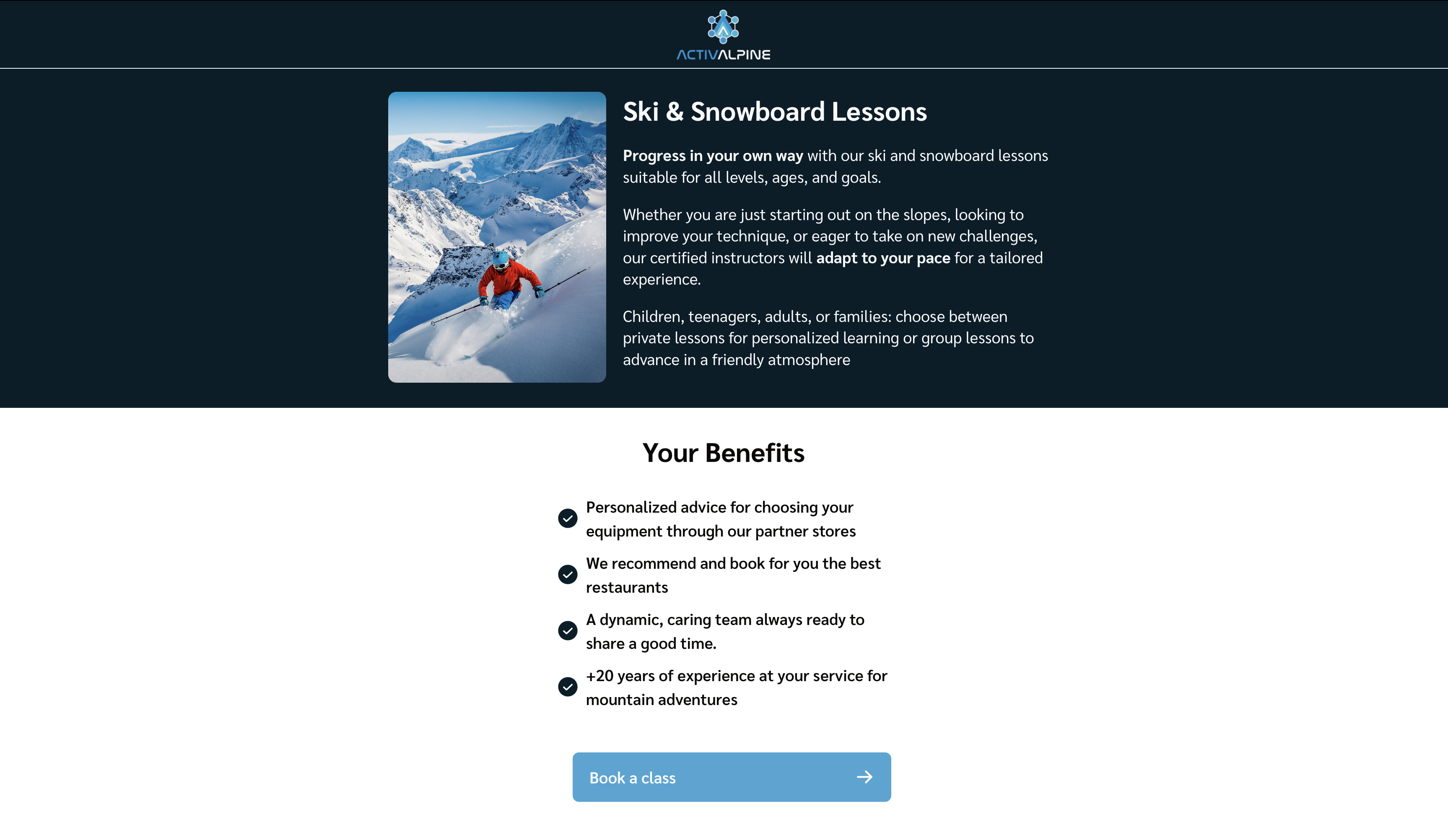 Création d’une landing page interactive permettant de sélectionner son cours de ski avant d’être redirigé vers le système de réservation d'ActivAlpine