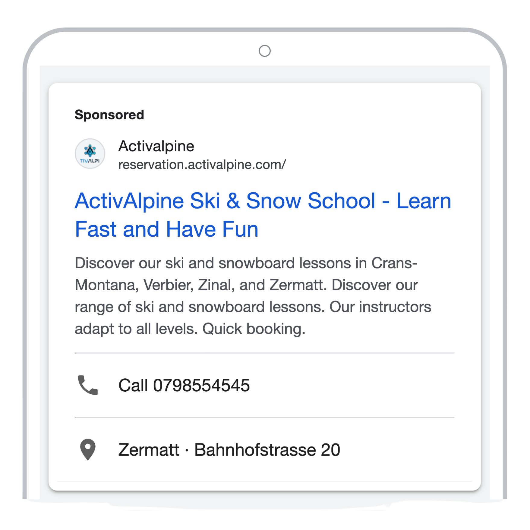 Campagne Google Ads connectée à un funnel moderne et optimisé pour la vente de cours de ski.