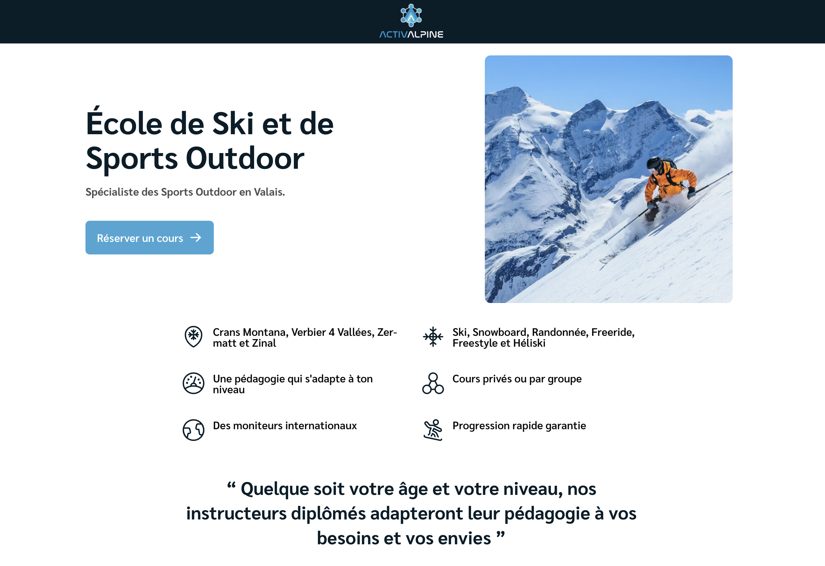 Campagne Google Ads connectée à un funnel moderne et optimisé pour la vente de cours de ski.